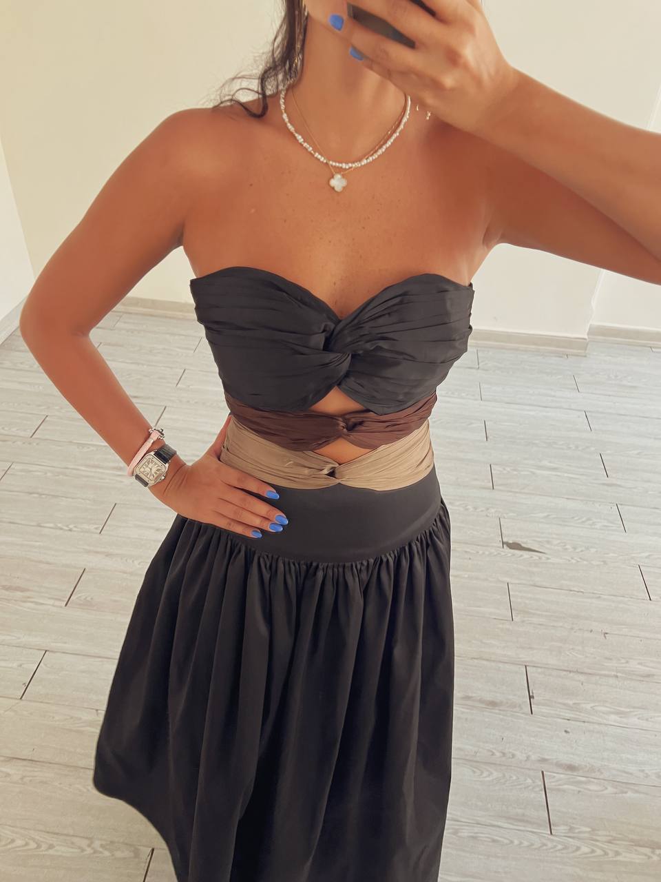 پیراهن ماکسی کرپ لنوین و دامن تور و تافته