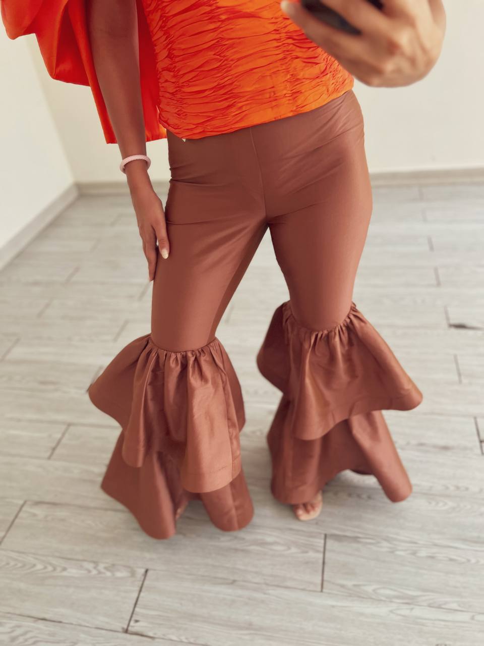 شلوار مجلسی تافته ابریشم رنگ قهوه ای با دو طبقه چین